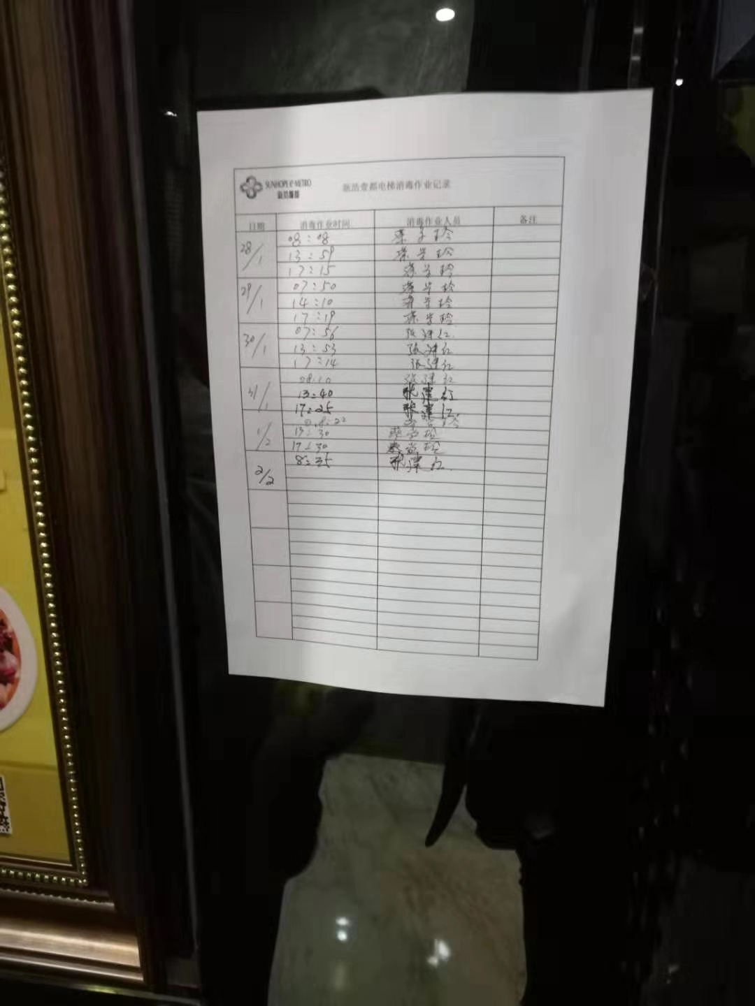 9.電(diàn)梯內(nèi)增設消毒記錄表,明δ'•₩(míng)确每次消毒記錄時(shí)間(jiān),方便客戶知(zh↓ ī)悉